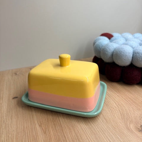 Fabriqué artisanalement et peint à la main, ce joli beurrier est coloré et joyeux sur votre table!
