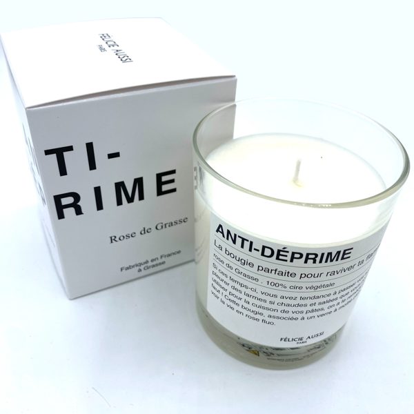 "Si ces temps ci, vous avez tendance à passer vos soirées à pleurer des larmes si chaudes et salées que vous pourriez les utiliser pour la cuisson de vos pâtes, on a le remède qu'il vous faut ! Cette bougie, associée à un verre à moitié plein, vous fera voir la vie en rose fluo."