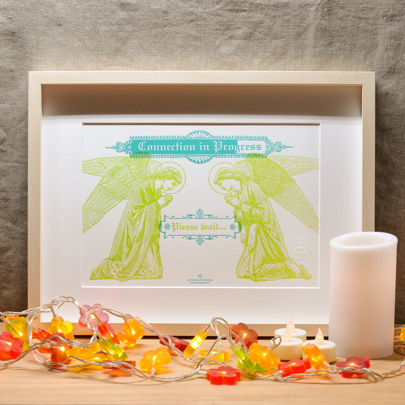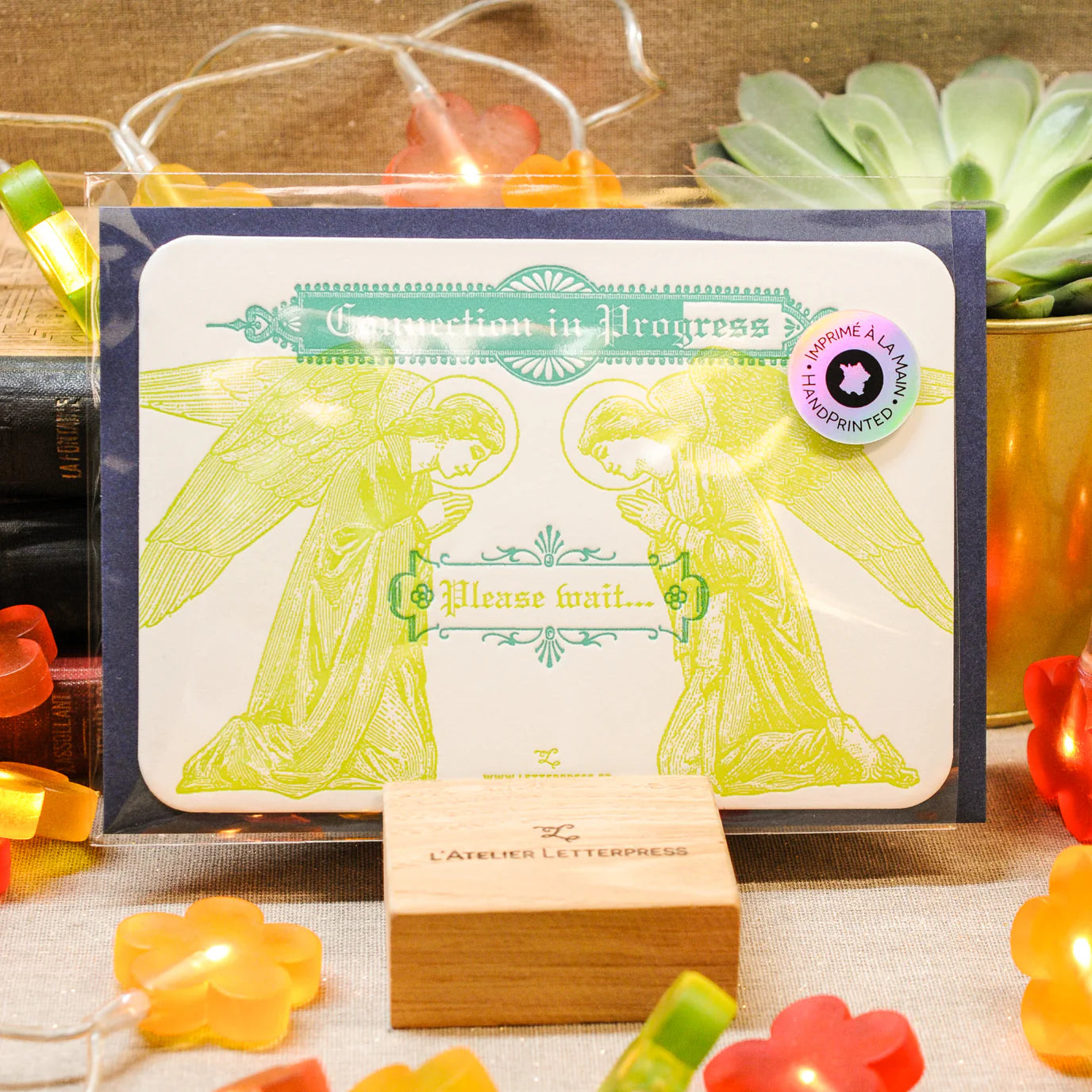 Ces cartes et affiches ont été créées et réalisées dans un atelier francilien, patiemment imprimées à la main en Letterpress, une couleur à la fois, avec de vibrantes couleurs Pantone sur un luxueux papier mat très épais (1mm).
