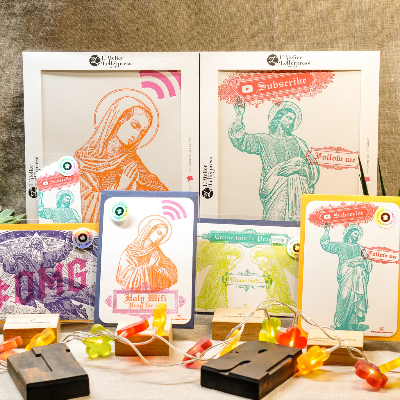 Magnifiques cartes et affiches de la collection "Digital prayers", créée à partir de gravures pieuses vintages, hautes en couleurs.