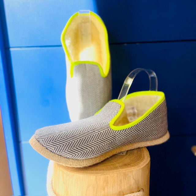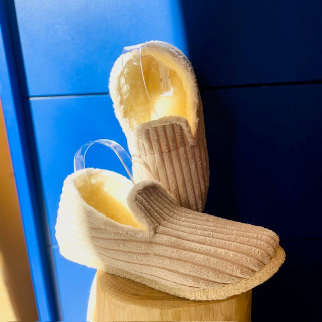 Nous sommes très fiers de nos belles Charentaises entièrement fabriquées à côté de chez nous (en Charente, d'où le nom) depuis belle lurette !