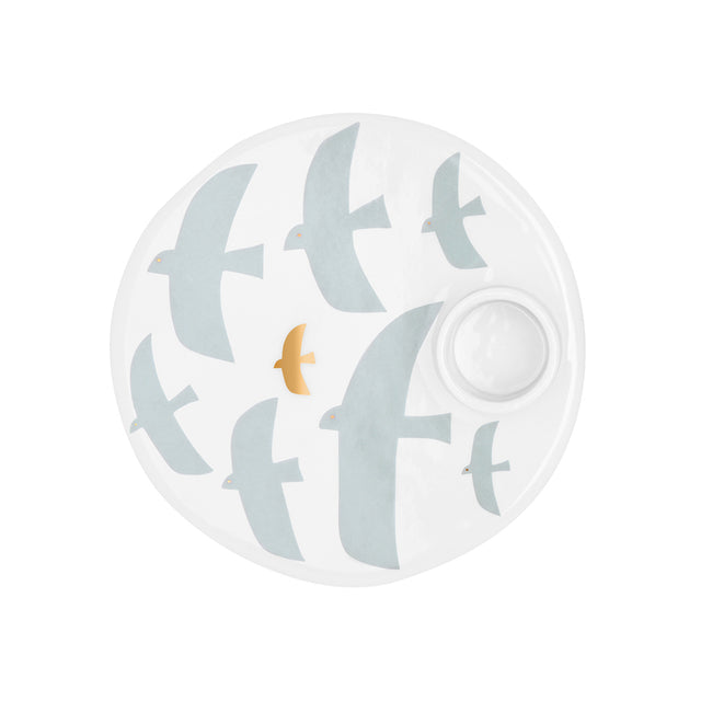 Bougeoir déco en porcelaine blanche décoré avec des hirondelles ou des motifs de couleur