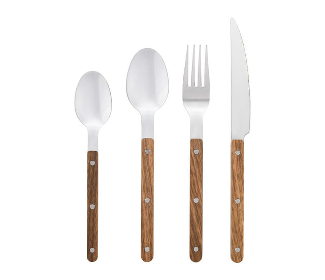 Design moderne et épuré pour ces couverts fins. Bonne prise en main. Inox 18/0 et résine effet bois