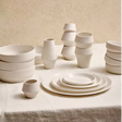 Confectionnée en porcelaine blanche pure, chaque pièce est un équilibre entre rudesse et raffinement, avec une surface extérieure mate et un intérieur brillant qui capte la lumière.