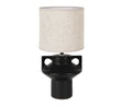 Jolie lampe originale avec son pied céramique noir qui contraste harmonieusement avec son abat jour en lin.