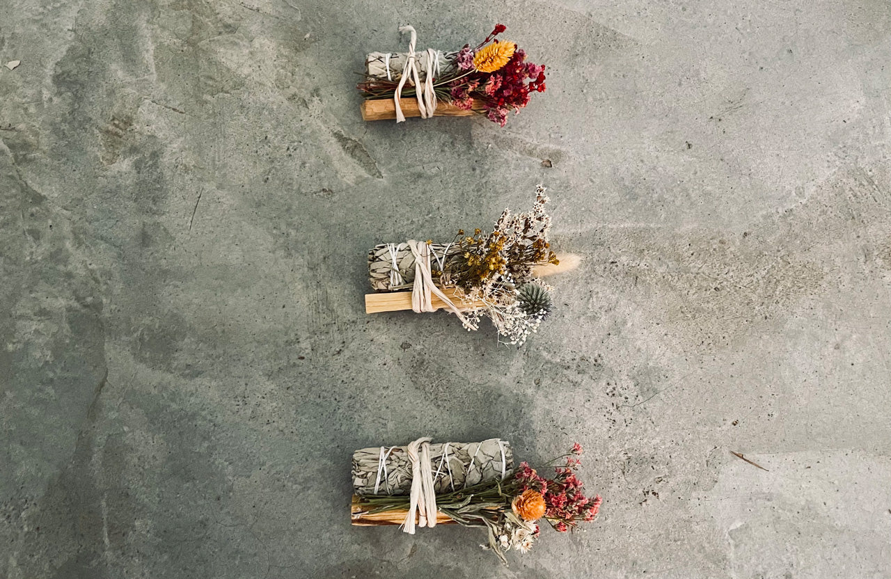 Petit bouquet de fleurs séchées, sauge et bois de palo santo à faire bruler pour se sentir zen...