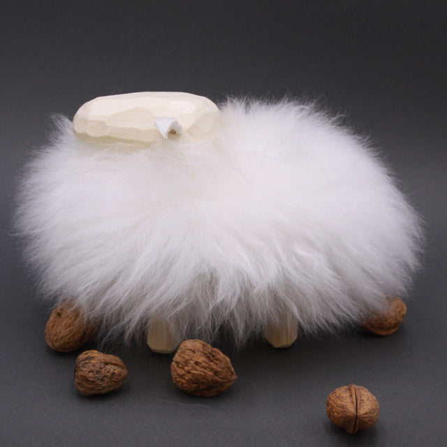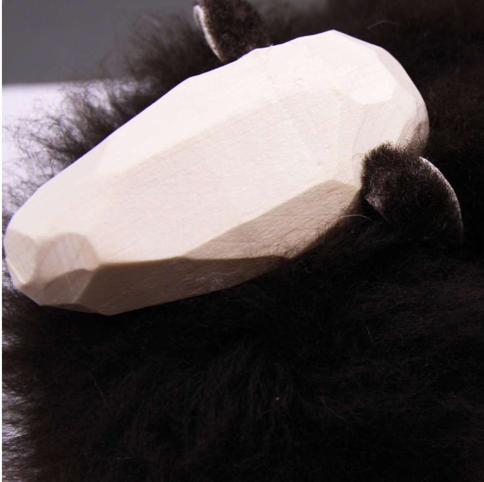 Bêêêêêêêê.... ça veut dire : je suis un trés joli petit mouton qui ne demande qu'à être adopté par une chouette famille aimante :-) Je suis tout doux pour tes petites mains alors carresse moi encore et encore! Fabriqué artisanalement en Suède (bois et peau de mouton véritable).