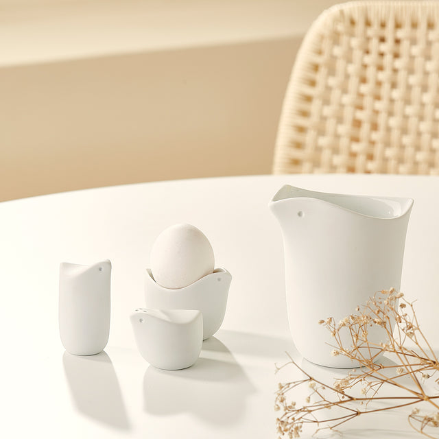 Petit pot à lait (ou autre) en porcelaine blanche. Trop mignon, à associer avec les coquetiers et le set sel et poivre oiseau