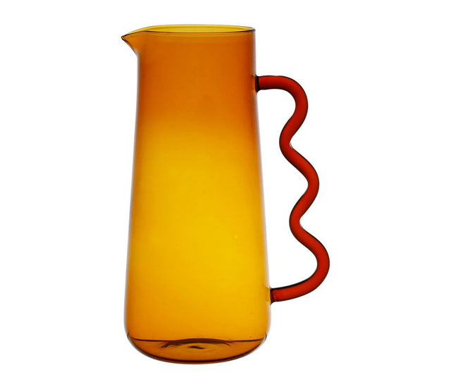 Jolis pichets en verre borosilicate avec une anse en courbes et contraste de couleur.