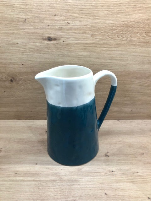 Pichet en céramique, coloris bleu pétrole/ orange corail/ tribu/ mint/ vert /vert d'eau ou bien à pois. Ses irrégularités font tout son charme ! Et pourquoi ne pas l'utiliser en vase si j'ai envie ???