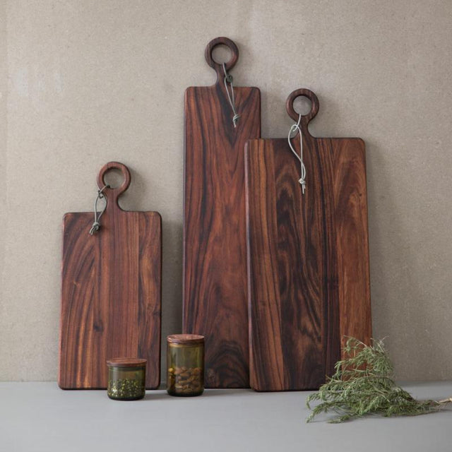Longue planche fabriquée en bois de Sheesham durable et naturellement veiné. Elle allie robustesse et esthétique et sa longueur est parfaite pour un festin à partager.