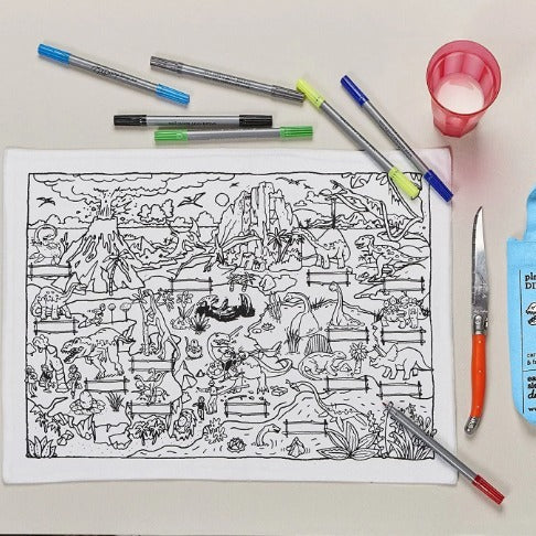 On sait que c'est toujours plus rigolo de colorier sur le mur.. Ici c'est la version set de table a colorier, parfait pour vos minis, ce qui les occupera lors de repas en famille un peu long ou lors de voyages :-) Un passage en machine à 40° pour faire disparaitre l'encre, et on recommence encore et encore !