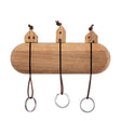 - Matière : barre murale en bois d‘acacia non traité, avec trois porte-clés différents en bois d‘acacia ornés de motifs gravés au laser, anneaux en métal, cordons en cuir