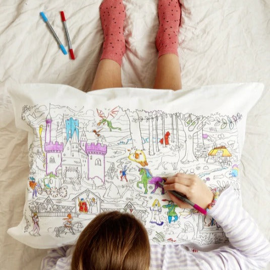 On sait que c'est toujours plus rigolo de colorier sur le mur.. Alors on a pensé que le concept de la taie d'oreiller a colorier pouvait être parfaite pour vos minis :-) Un passage en machine à 40° pour faire disparaitre l'encre, et on recommence encore et encore !