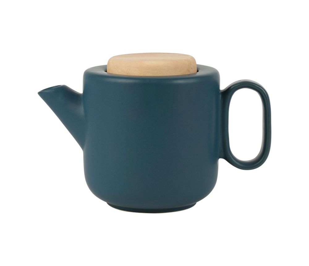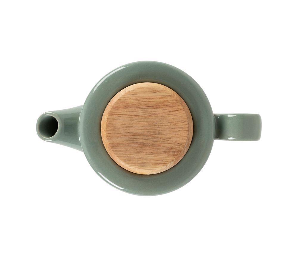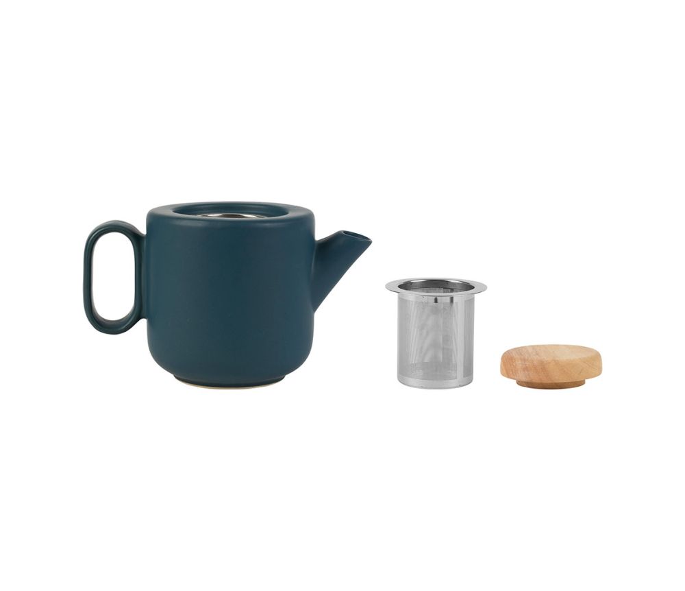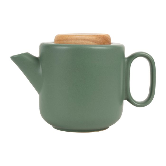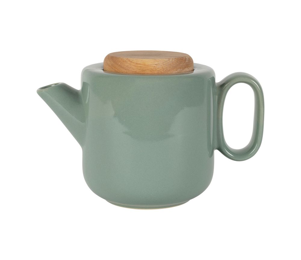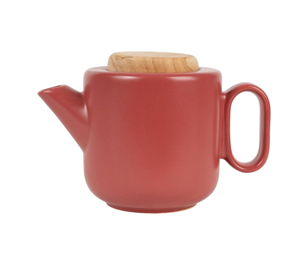 Théière en grès et filtre inox fin. Couvercle en bois d'acacia.